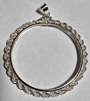 - Premium Quality Materials: The majority of the bezels on our site are crafted from .925 Sterling Silver, available in the classic Plain Style with a Coin Edge Channel for a timeless look. For those seeking a more ornate design, we offer the Twistwire Rope Style, also in Sterling Silver. Additionally, custom orders are available for bezels made in luxurious 14kt gold or gold-filled, perfect for those looking to elevate their coin display.
