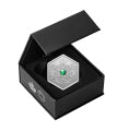 Delicate ice crystals gracefully floating through the air, each shape reflecting light back on the snowy landscape dotted with evergreens—this is the beauty of a Canadian winter. Our Snowflake series of hexagon-shaped coins continues, this time featuring a fernlike stellar dendrite captured by photographer Don Komarechka. At the centre of this little icy wonder is a green crystal, its rich hue evoking the majesty of the evergreen trees that remain lush and robust, even amidst winter’s stillness. It’s a dazzling winter-themed celebration of the duality of nature, at once mighty and elegant.
