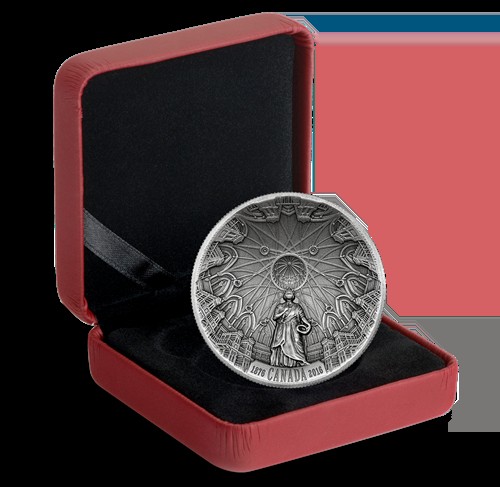The reverse also features a banner with the commemorative dates “1867-2016”, and engraved word “CANADA”. The obverse features the effigy of Her Majesty Queen Elizabeth II by Susanna Blunt.